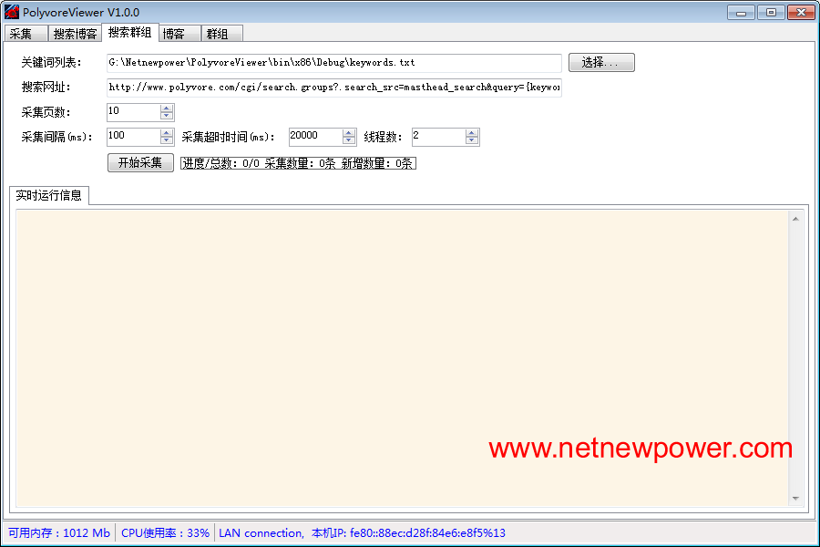 群组的GroupUrl,GroupName,Manager,HomePage,Introductuon,Members,Sets等信息,并且,对于已经采集过的博客、群组数据,还可以进行更新采集操作,实现数据与www.polyvore.com中的个人主页同步。